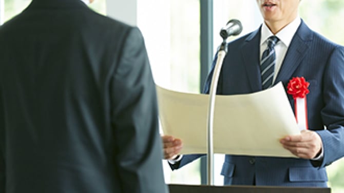 優れた業績や功績を達成した社員が表彰されます。全社員対象です。