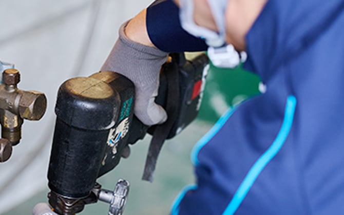 各部署でのOJT(On-the-Job Training)が中心です。工事、設計積算、施工管理などの各課への実践経験を通じて、業務スキルを身につけます。さらに、OJTの振り返りや社内研修、ガス溶接技能講習、ビジネスセミナーも行います。