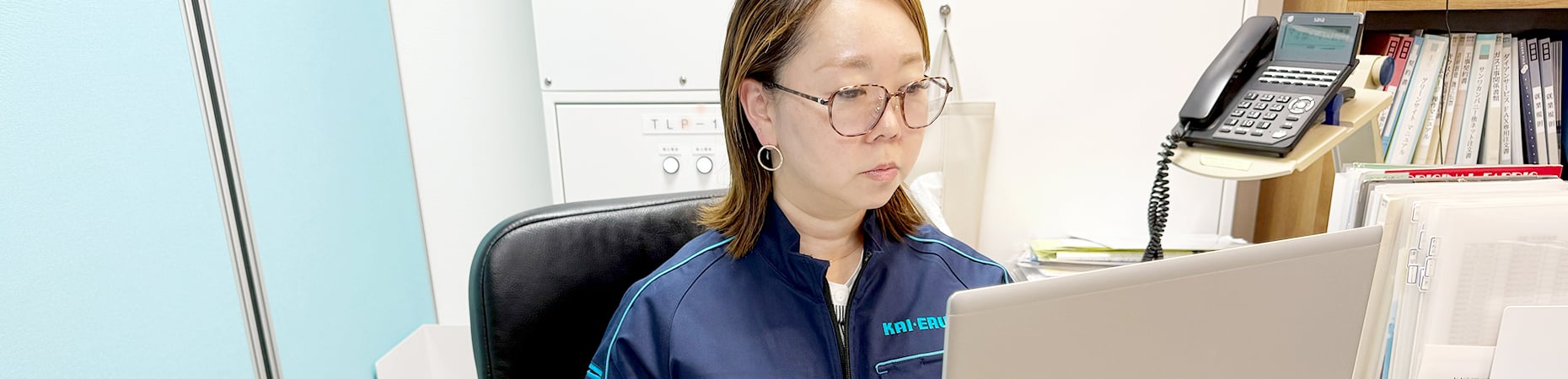 結婚、出産、十数年専業主婦として家庭にいた中、子供達も手が離れてきたので一念発起し、久々の就職活動。緊張しっぱなしの面接での、社長の親しみやすい人柄に惹かれ入社を決めました。